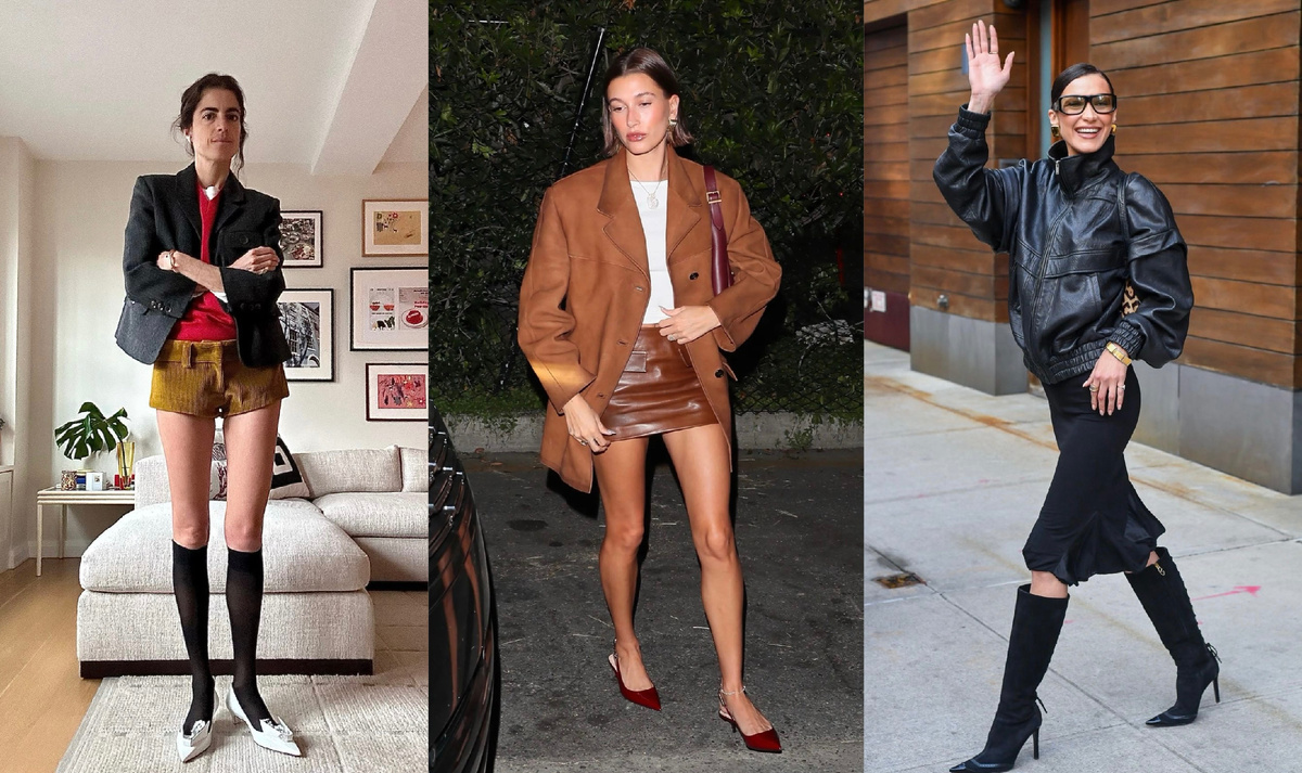 Хейли Бибер же предпочла слингбэками дополнить насколько классические, настолько и смелый образ с мини-юбкой!