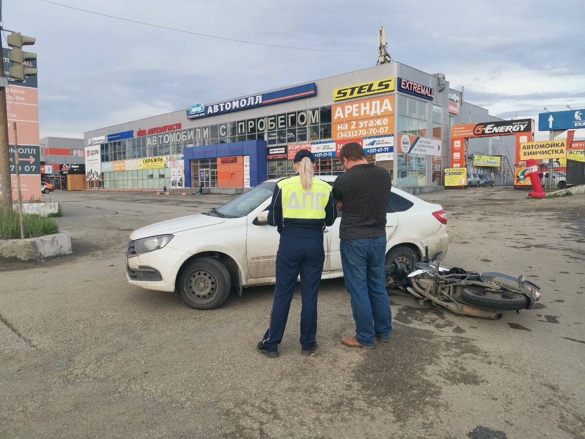 Несовершеннолетнего мотоциклиста сбили у Березовского привоза ДТП произошло вчера, 29 июня. 22-летний водитель ВАЗ 211440 при повороте направо не заметил мотоцикл, который двигался в попутном направлении, отчего мотоцикл по инерции откинуло на стоящую «Ладу Гранта». В результате происшествия пострадал 17-летний водитель мотоцикла, у него резаная рана рана левой руки и перелом правой лучевой кости. Подросток возвращался домой в Березовский из Екатеринбурга, был в мотошлеме, имеет стаж вождения по категории "А1" 11 месяцев и к административной ответственности ранее не привлекался. Стаж водителя ВАЗа - 3 года, к административной ответственности привлекался 21 раз, трезвый. На него составлен протокол за тонировку, а также возбуждено административное дело за причинение вреда здоровью средней тяжести. @zg66