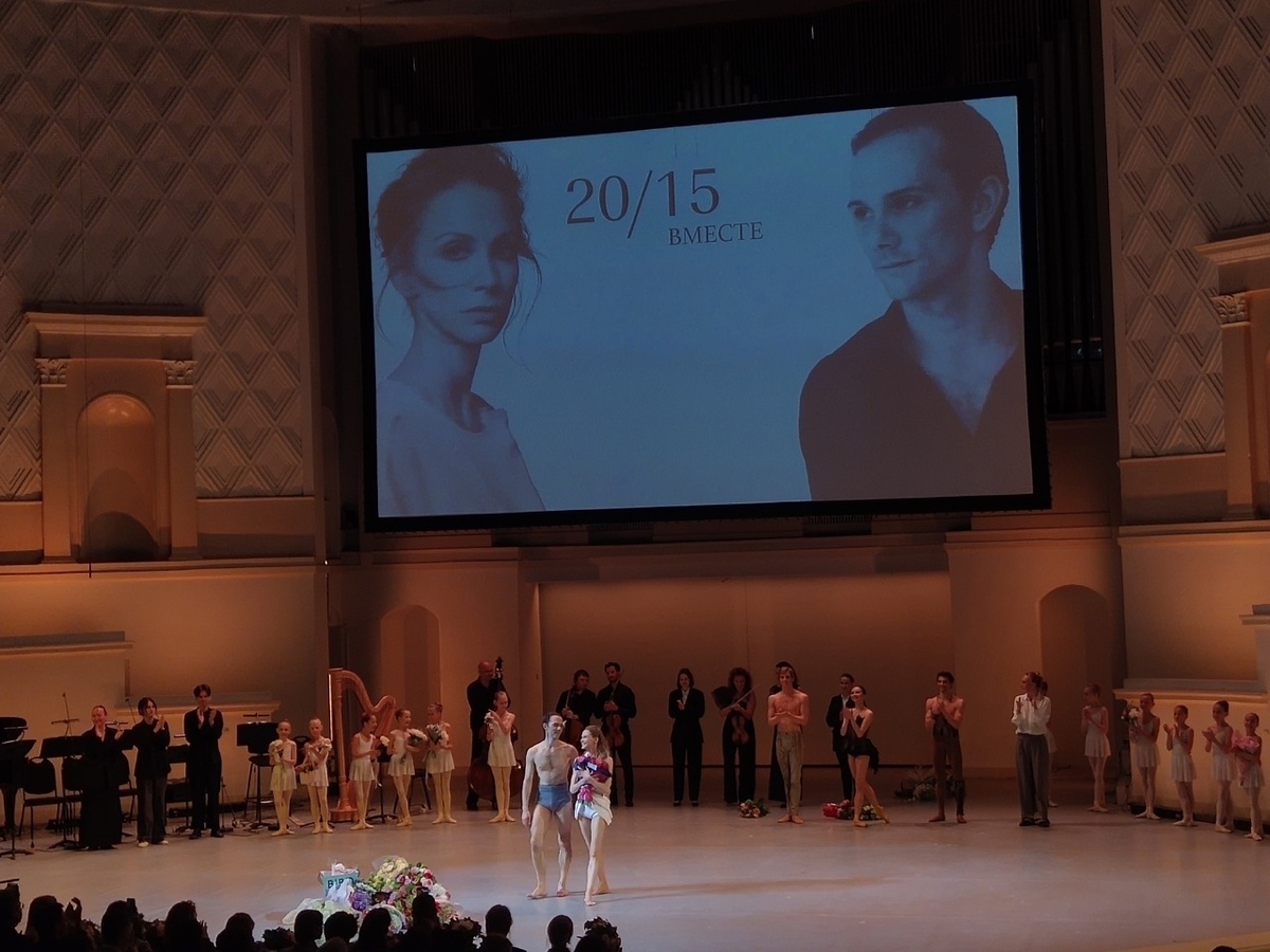 Это, по сути своей, был бенефис, причём сразу для двух артистов, замечательных артистов, по праву и заслуженно вознесённых на самую вершину мирового балетного Олимпа – Примы и Премьера Большого театра Анастасии Сташкевич и Вячеслава Лопатина. Которые, кроме партнёрства на сцене, ещё и супружеская пара, а цифры в названии расшифровываются легко: 20 лет на сцене / 15 лет в браке – впечатляющая арифметика! И я являюсь давним поклонником их творчества, так что заведомо пристрастен, впрочем, даже если бы мне зудело найти повод для гундения, то сложновато бы пришлось… При этом, я совсем не любитель формата «сводный концерт», однако, для такого события только он и уместен. Так что совершенно ничего не омрачило впечатления от этого творческого вечера, шедшего под три часа, при практически полном зале – полный восторг! Что, во многом, обусловлено уровнем организации мероприятия и его режиссуры, а он оказался на серьёзной высоте! Организаторы выступили по полной: сняли целый фильм про Анастасию