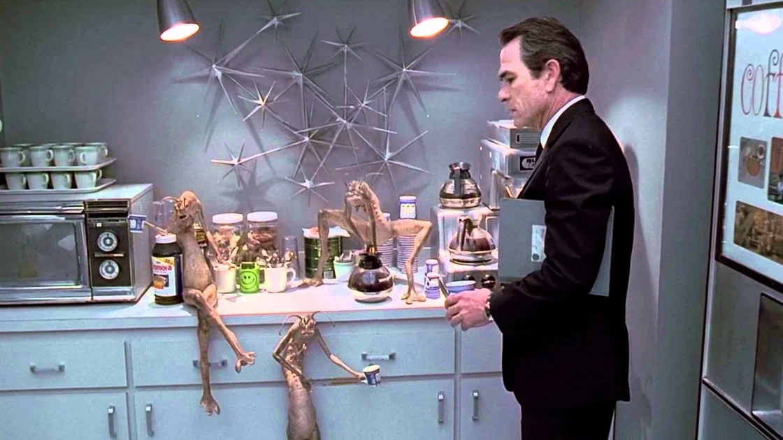 - Таинственные агенты в черных костюмах, которые допрашивают свидетелей НЛО.