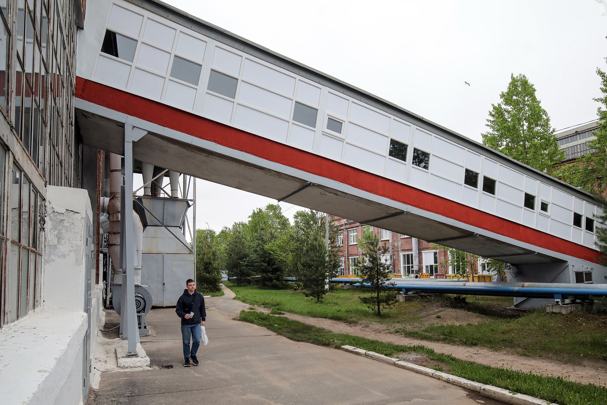 Теперь – любо-дорого посмотреть. Кирпичную кладку восстановили, оштукатурили, покрасили. С двух сторон установлены современные оконные блоки из ПВХ-профилей с заполнением светопрозрачной части однокамерными стеклопакетами и глухое заполнение из сэндвич-панелей, некоторые оконные створки при необходимости можно открыть и проветрить помещение. Маляры поработали не только снаружи, но и внутри. Переходная галерея постоянно используется, здесь передвигается тележка, перевозит материалы. Сегодня галерея красивая и безопасная для перемещения грузов и прохода под ней людей.