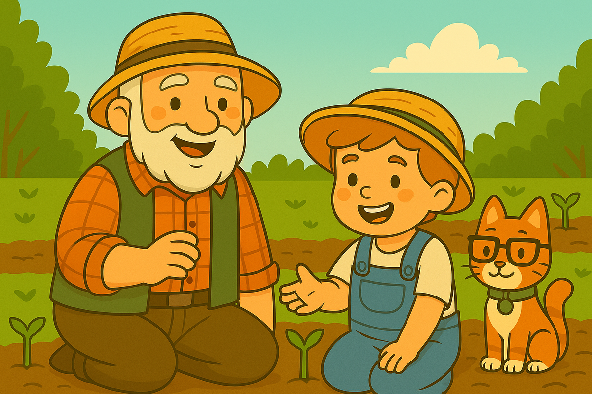 Когда ко мне приезжает Матвей — мой внук, 4 года от роду, любитель лейек, червячков и грядок — я сразу откладываю тяпку в сторону. Не до борьбы с проволочником: начинается огородная игра! 🎲 Матвей не просто копается в земле. Он «сажает» картошку из картона, «спасает» помидоры от клопов и «продаёт» редис на дачном рынке. Всё — в игре, но с настоящими чувствами. 👴 Семёныч говорит: