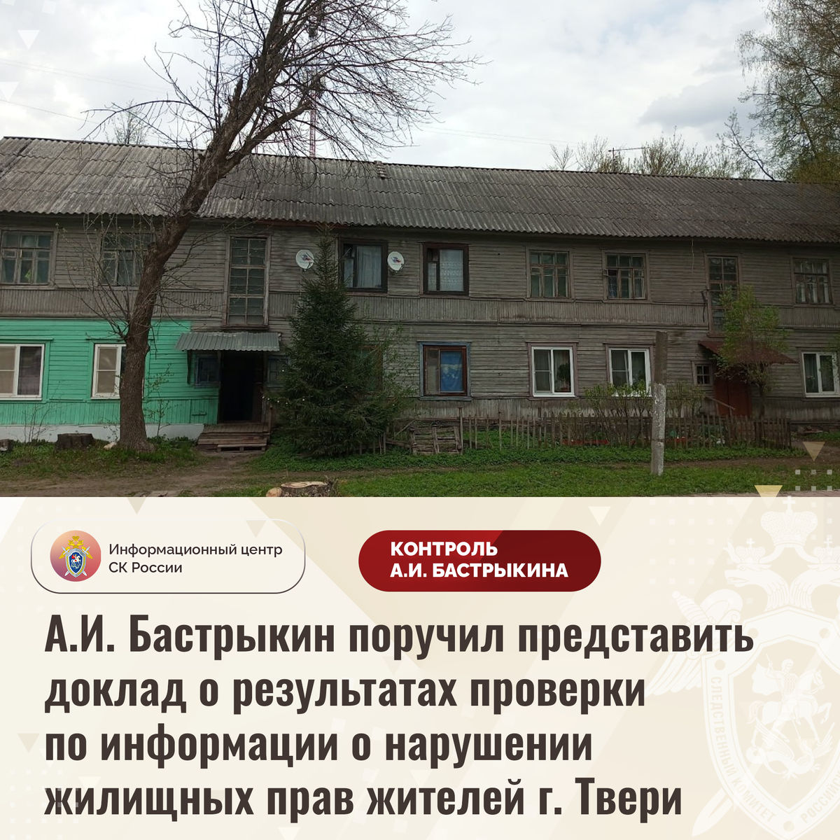 А.И. Бастрыкин поручил представить доклад о результатах проверки по информации о нарушении жилищных прав жителей г. Твери