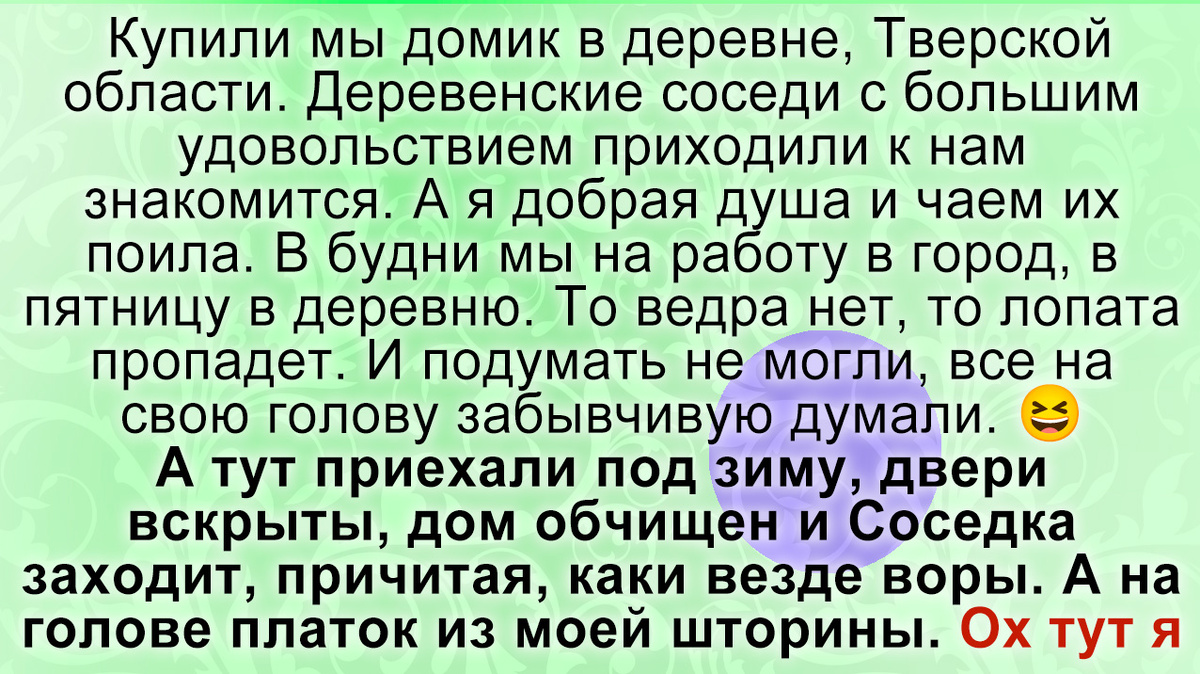 В будни мы на работу в город, в пятницу в деревню. То ведра нет, то , которое вот тут вот стояло. То лопата пропадет. И подумать не могли, все на свою голову забывчивую думали.