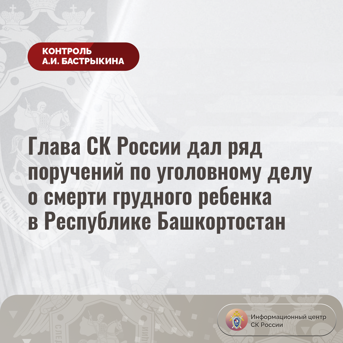 Глава СК России дал ряд поручений по уголовному делу о смерти грудного ребенка в Республике Башкортостан