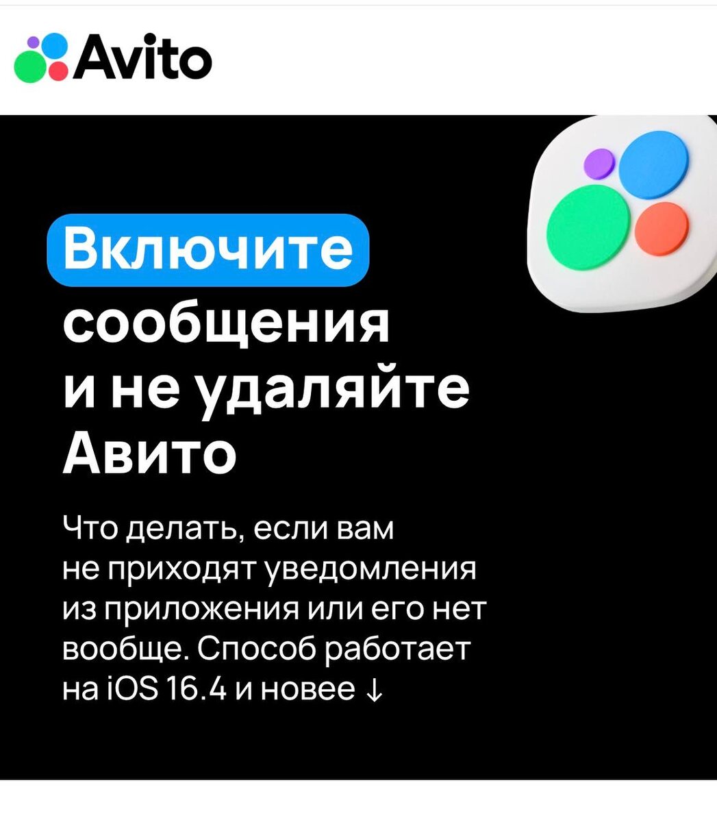 Не приходят уведомления от Авито. Что делать Не так давно приложение Авито стало недоступно в App Store. Поэтому перестали приходить уведомления о новых сообщениях Что можно сделать 1️⃣ Установить на айфон браузерную версию Авито и включить уведомления. Инструкция на фото👆 Обязательно снимите галочку в разделе «Сгружать неиспользуемые приложения». Иначе заново установить авито уже не получится, пока оно снова не появится в App Store 2️⃣ Почаще заглядывайте в приложение вручную. Иногда старый добрый контроль лучше любых пушей 😉 Как выходите из положения? Или вас не коснулось?