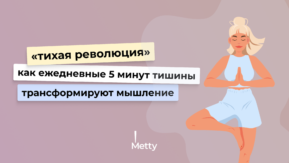 Именно тишина становится все более востребованной, учитывая динамичный уровень жизни современного общества. Практикуя медитацию в тишине каждый день хотя бы 5 минут, легко добиться внушительных результатов, включая и полноценную трансформацию образа мышления. Это можно назвать «тихой революцией», и о ней вам подробнее расскажет приложение для духовного развития Metty.