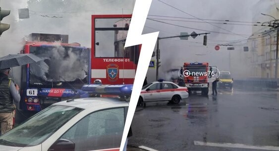 В центре Ярославля загорелся троллейбус с пассажирами внутри