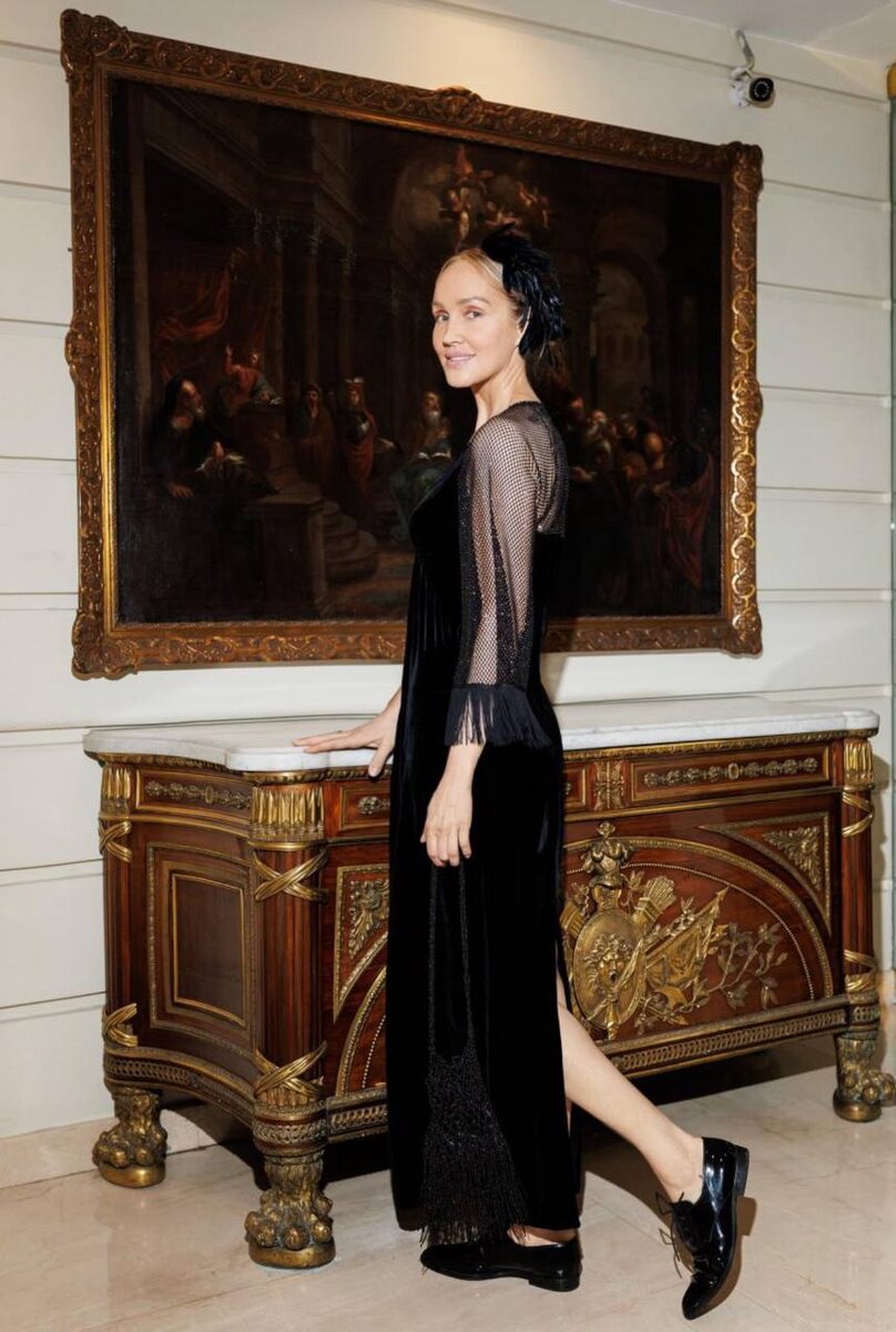 В рубрику «образ дня» сегодня однозначно попадает дизайнер и основатель бренда Loom by Rodina Светлана Родина в платье, созданном специально для XIX благотворительного торжественного приема в Зимнем дворце в Эрмитаже. На создание этого платья ушло более тысячи страз, которые прикреплялись к сетке, чтобы придать образу эффект второй кожи. Сама сетка вручную притачивалась к бархату из натурального шелка, а изнутри изделия — шелковые канты и тесьма с бахромой. Вдохновением для создания такого дизайна платья стала выставка «Упакованные грёзы. Мода ар-деко из собрания Государственного Эрмитажа и коллекции Назима Мустафаева», посвященная женской моде 1920-х — начала 1930-х годов, когда главенствующим художественным направлением был стиль ар-деко. К слову, выставка уже открыта для посетителей. Так что если вдруг вы окажетесь в Санкт-Петербурге, обязательно посетите ее.
