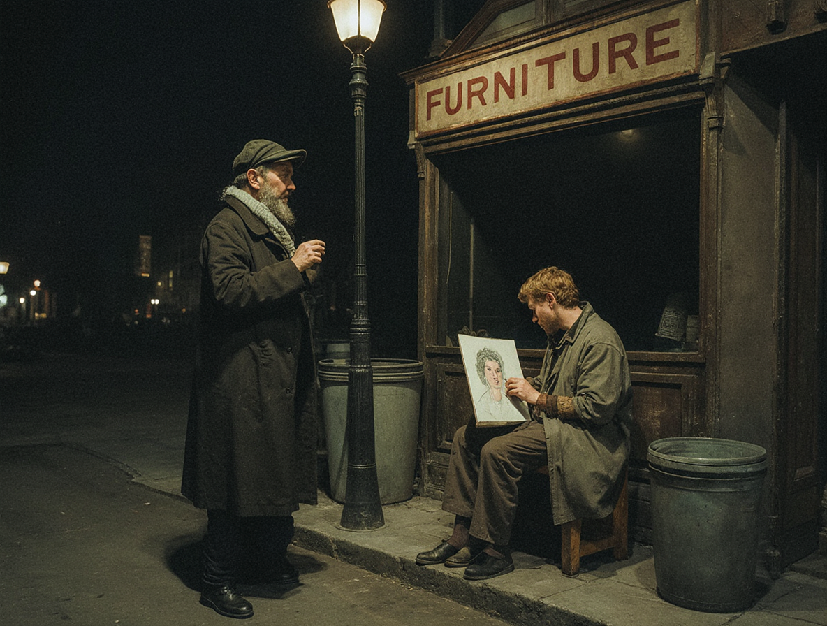 Был вечер, неуютный, с сыростью. Та самая поздняя осень, когда листья валяются по земле, будто чужие письма, давно потерявшие адресатов. Павел Еремеевич, владелец мебельной лавки на углу Мещанской и Малой Козихи, вышел покурить — не от нужды, а скорее от скуки. Покупатели днём были, но не те, у кого душа нараспашку, а те, кто сует купюры, просят скидку и уходят с видом победителей.