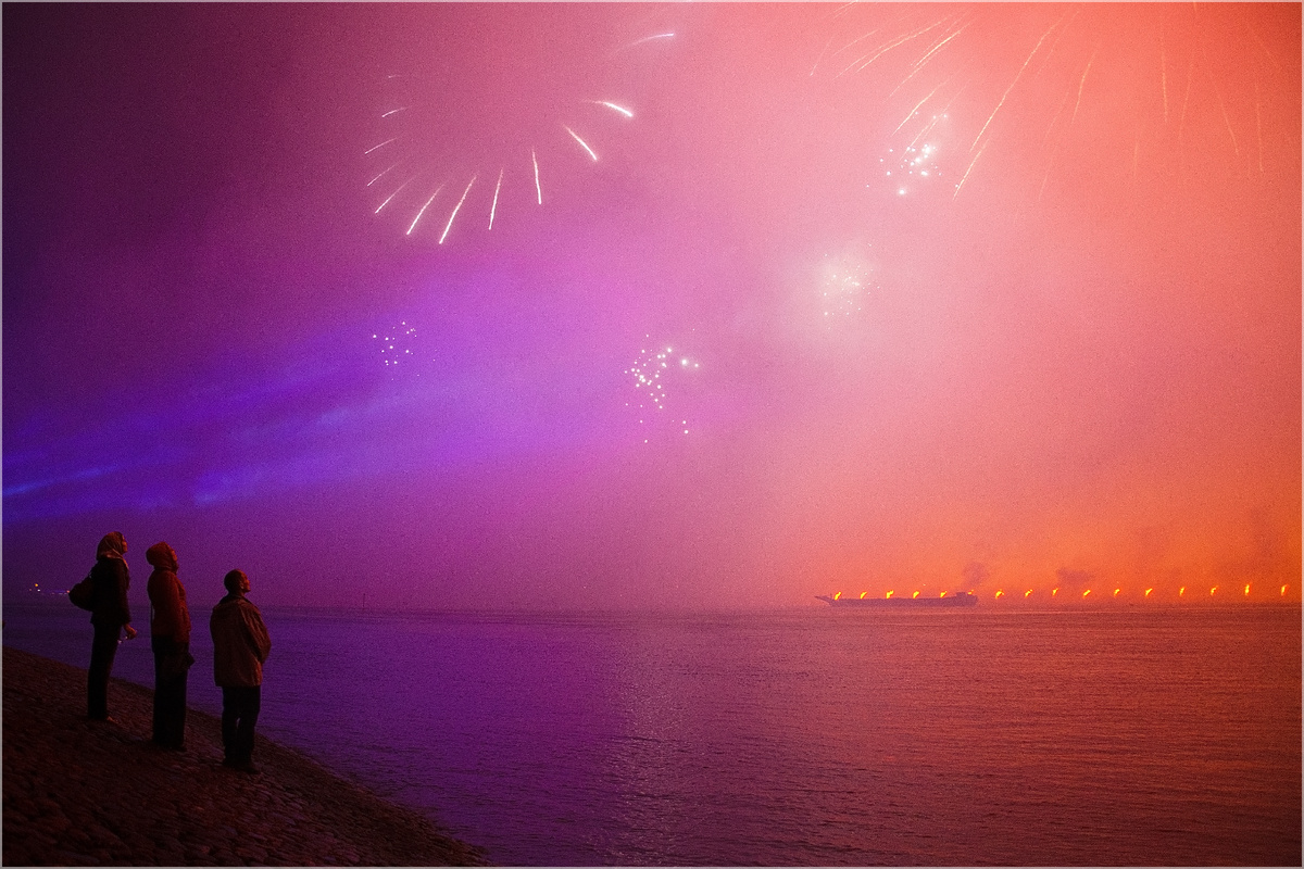 P.s. Ниже фотографии от 24.06.12, снятые мною с Заячьего острова. Тогда выдалась такая же пасмурная погода, а кораблик прошёл где-то вдали за пеленой дыма от завораживающего салюта.