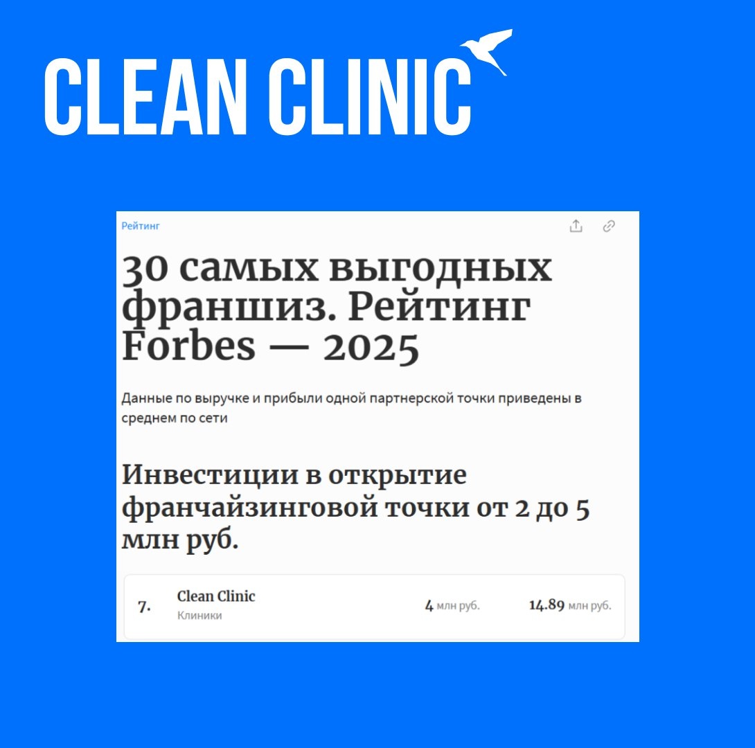 😀 Clean Clinic — в топ-30 самых выгодных франшиз 2025 года по версии Forbes