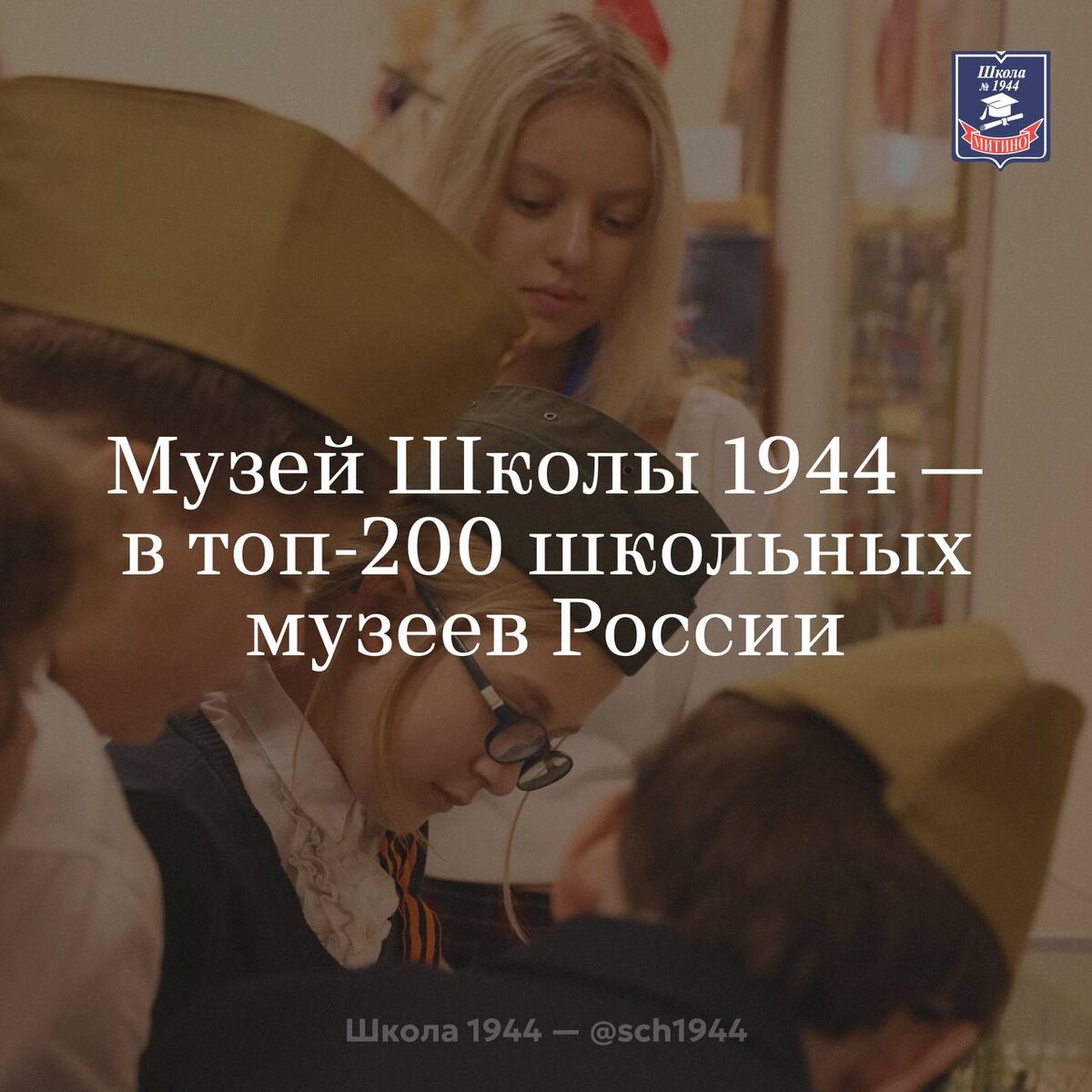 Музей Школы 1944 вошёл в топ-200 музеев образовательных организаций России 🙌 Музей Победы опубликовал рейтинг лидеров всероссийской программы «Школьный Музей Победы» 2024–2025 учебного года. Музей нашей школы обошёл почти 3 тысячи конкурентов и попал в топ-200. 💭 «Благодарим команду "Школьного Музея Победы", которая сопровождает нас и мотивирует на важные проекты по сохранению исторической памяти! Огромное спасибо администрации школы, учителям, ученикам и, конечно, нашим активистам, которые развиваются в музейном деле. Например, Оля из 7 "А" победила в конкурсе и поехала в детский центр "Орлёнок" на историко-патриотическую смену, а также стала внештатным экскурсоводом Музея Победы», — говорит руководитель музея Школы 1944 Наталья Юрьевна Кузьмичёва. В рейтинг «ТОП-200.Школьный Музей Победы» вошли представители 59 субъектов России, а также Беларуси, Казахстана и Кыргызстана. ——— Рады быть частью важного дела! 🙏 #ДОНМ #ШкольныйМузей