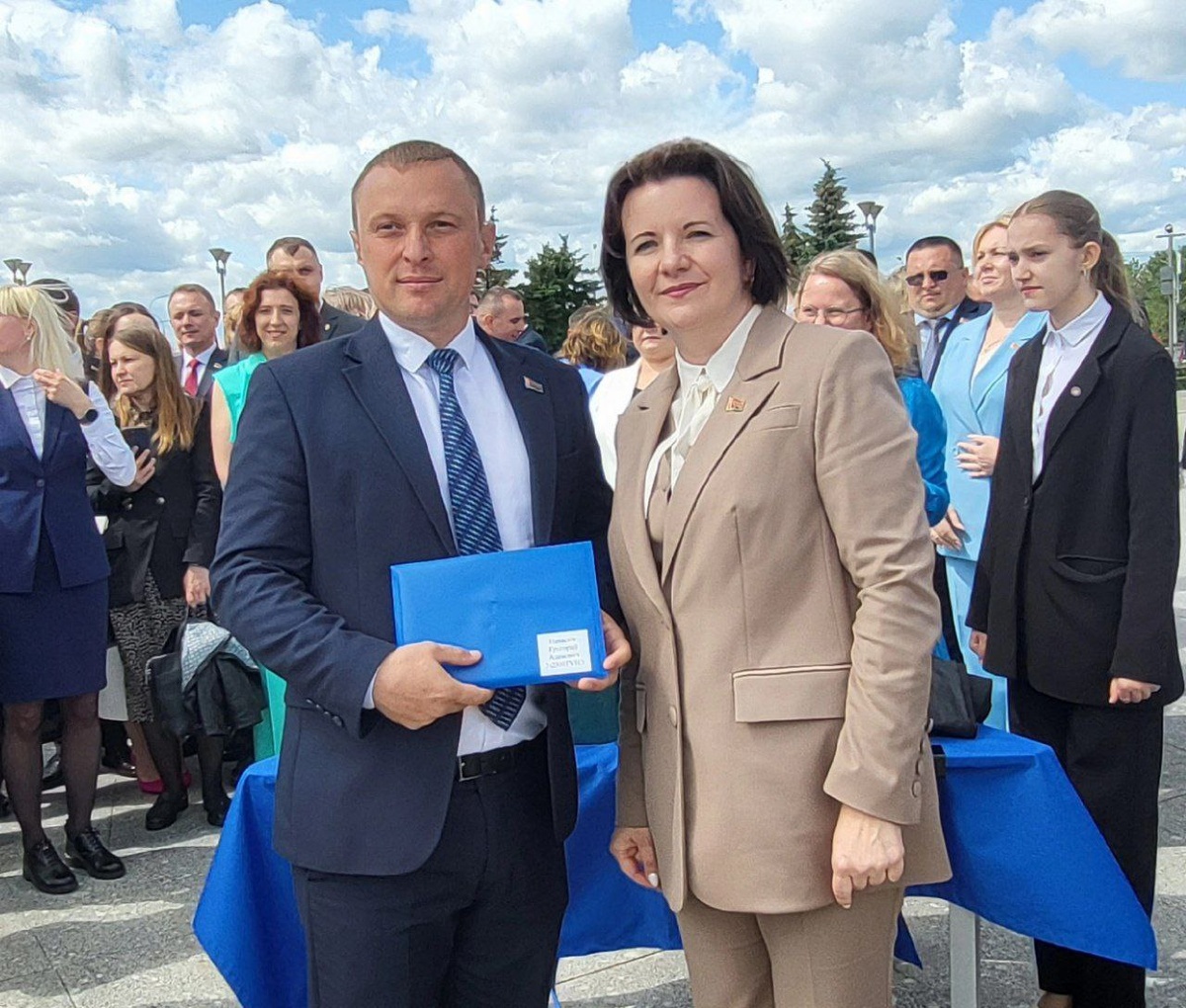 🎓Министр Наталия Павлюченко вручила дипломы выпускникам Академии управления в день ее 30-летия со статусом "При Президенте" 📍Минск, площадь Государственного флага ➡️В торжестве приняли участие около 1,5 тысяч выпускников 2025 года, а также преподаватели, почетные гости и представители руководства страны. 💐Министр труда и социальной защиты Наталия Павлюченко поздравила Академию с юбилеем и вручила дипломы выпускникам специальности "Государственное управление национальной экономикой" (ГУНЭ): «Поздравляем выпускников, профессорско-преподавательский состав и весь коллектив Академии управления с этим двойным праздником – выпускным и 30-летием знакового статуса! Новым управленцам – успешного старта карьеры на благо родной страны!»