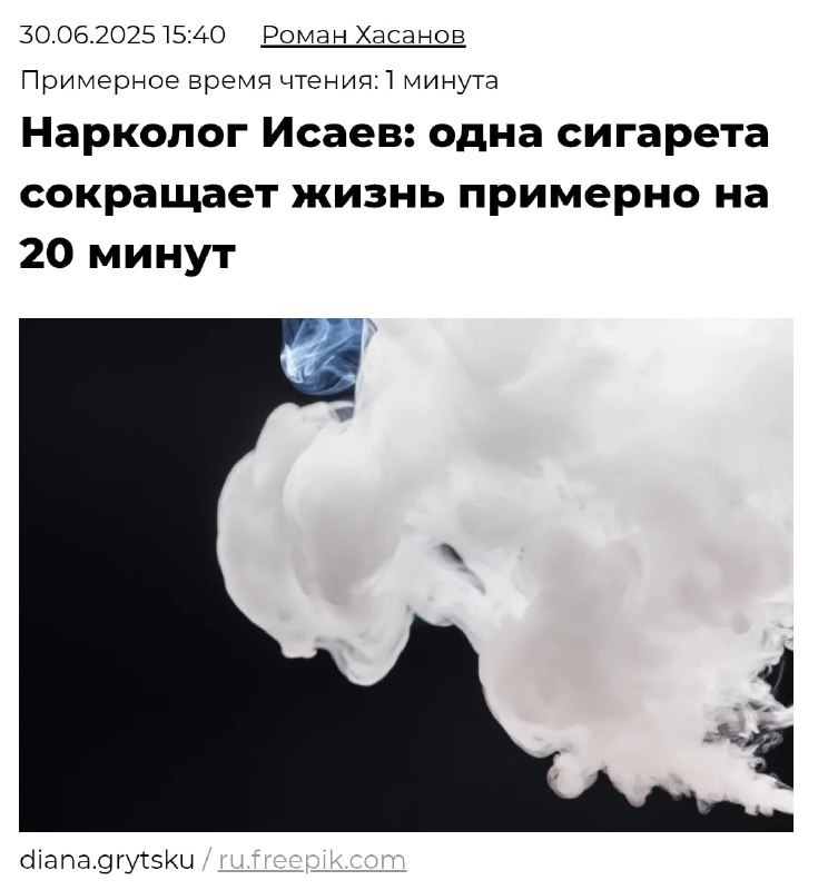 ⚡️Каждая сигарета минус 20 минут жизни — доктора всерьёз поднимают тревогу!