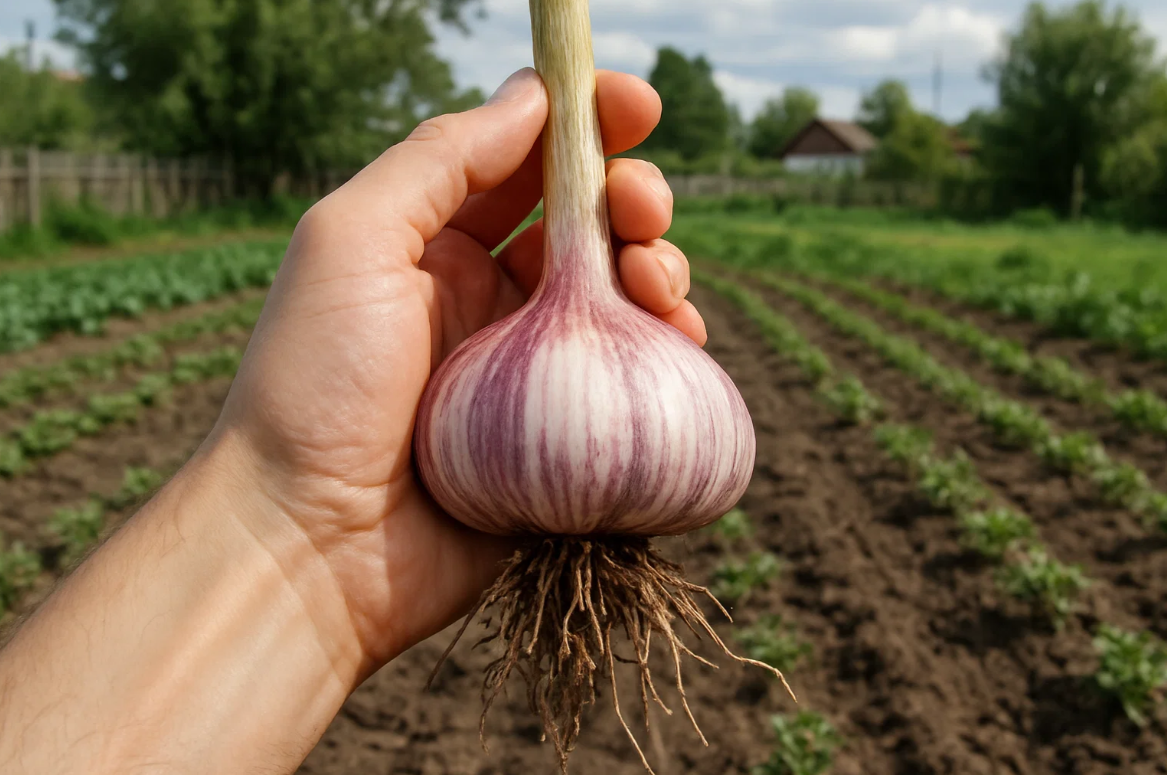 Многие дачники сталкиваются с тем, что вместо крупных и сочных головок чеснока вырастают мелкие и слабо развитые. Правильный подход к выращиванию позволяет значительно увеличить урожай и упростить уход, а также получить вкусный, ароматный чеснок, который хорошо хранится всю зиму. Качественный крупный чеснок можно вырастить, если соблюдать простую и проверенную технологию: подобрать правильный участок, подготовить почву, использовать здоровый посадочный материал и грамотно ухаживать за посадками на всех этапах. Выберите солнечный, проветриваемый участок, где раньше не росли лук или другие луковичные. Почва должна быть рыхлой, плодородной и нейтральной по кислотности. За 1-1,5 месяца до посадки подготовьте грядку: очистите участок от сорняков и мусора, внесите органику (компост или перегной по 10 л на 1 кв. м), добавьте песок на тяжелых почвах или перегной на легких, скорректируйте кислотность доломитовой мукой или мелом при необходимости. После внесения удобрений перекопайте землю на ш