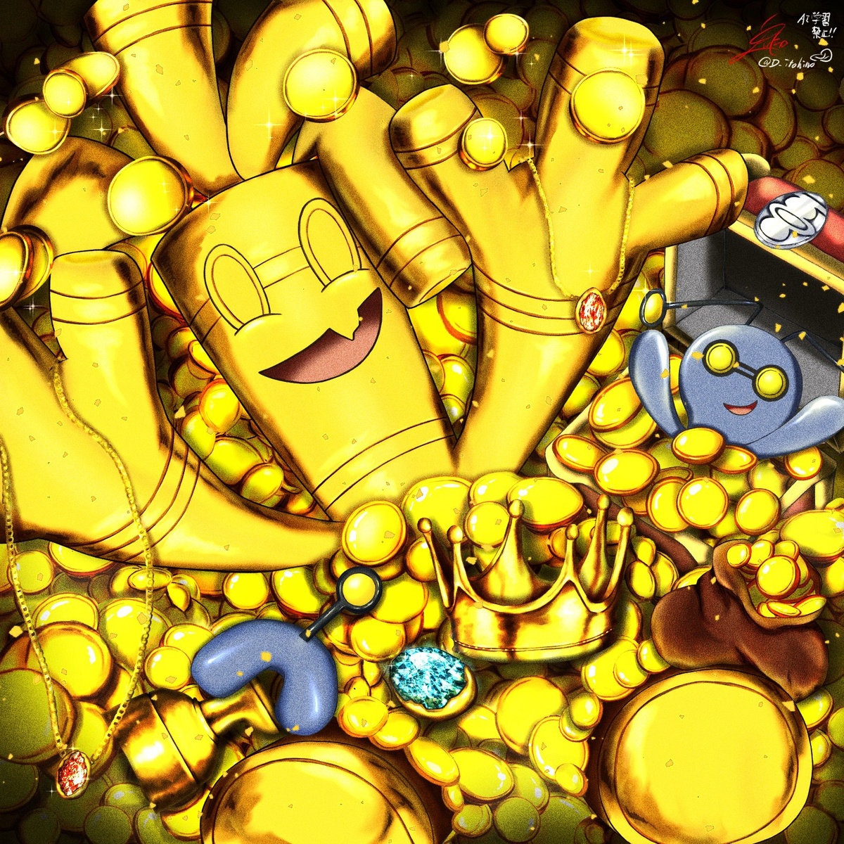 π¨ Π₯ΡΠ΄ΠΎΠΆΠ½ΠΈΠΊ: numeito @PokePikaProject βοΈ Π’Π΅Π³ΠΈ: #:d #aqua_gemstone #arms_up #brown_bag #coin #commentary_request #crown #evolutionary_line #fang #gem #gholdengo #gimmighoul #gimmighoul_(chest) #gold_coin #gold_crown #gold_skin #highres #jewelry #metal_skin #necklace #no_humans #numeito #open_mouth #pokemon #pokemon_(creature) #pokemon_focus #red_gemstone #signature #skin_fang #smile #sparkle #unworn_crown #yellow_eyes