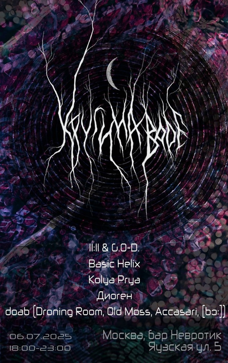Мск 2025.07.06 Круги на воде XXIV † Невротик 18.00 от 600р † vk.com/krugii Легендарный фестиваль электронной музыки наконец-то в столице. Нойз и индастриал будут кружить вместе с техно и дабом в невротическом ритме. Билеты #202507s@intothemsk #noise #ambient #drone #industrial #dub