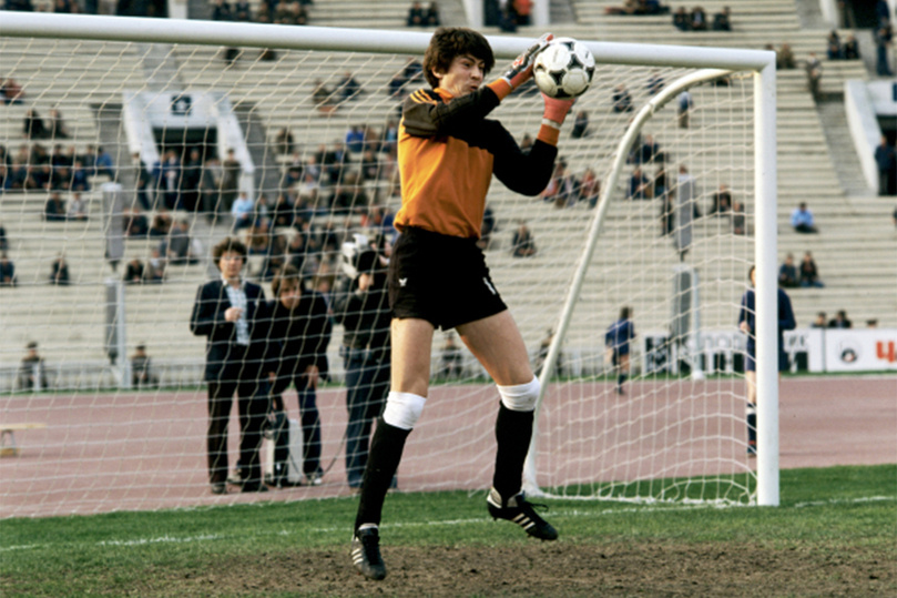 Вратарь нашего детства должен был уметь сильно и точно выбивать мяч в поле «С ноги!» Это сейчас – кидают как девочки ближнему, и пусть защита мается «Выходом из-под прессинга» через короткий перепас, пока не обосрётся – а раньше хороший удар был вратарю необходим.