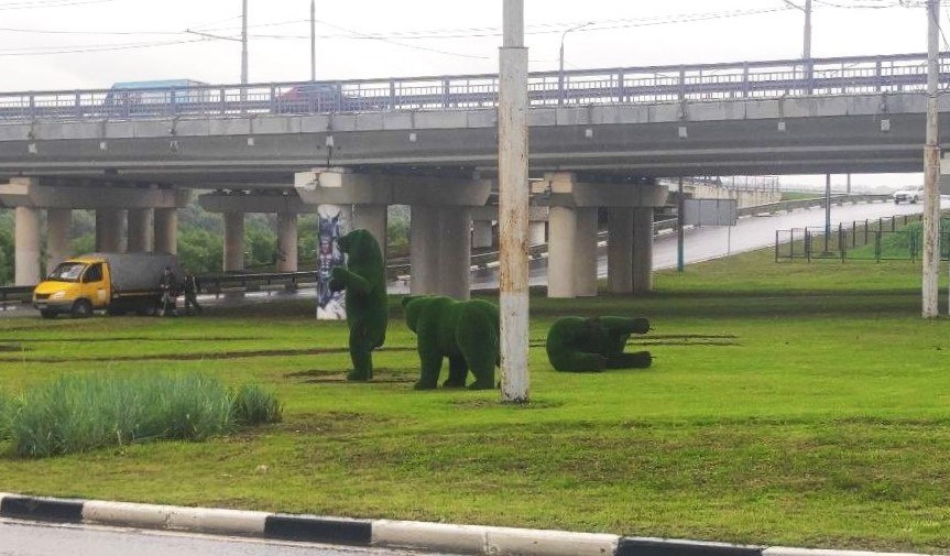 🌳 Скульптура медведя в Калуге неожиданно «прилегла» В понедельник, 30 июня, жители Калуги стали свидетелями необычного зрелища — одна из трёх знаменитых медвежьих фигур возле Гагаринского моста оказалась поваленной на бок. Эти скульптуры много лет встречают калужан и гостей города на въезде. В социальных сетях сразу появились предположения, что медведя мог сбить автомобиль — под мостом действительно стояла машина. Однако наш корреспондент, осмотревший место происшествия, не обнаружил явных следов ДТП. Возможными причинами могли стать сильный ветер, плановые работы или действительно случайный наезд. В городском хозяйстве пообещали оперативно решить проблему и вернуть скульптуру на место уже к утру завтрашнего дня.