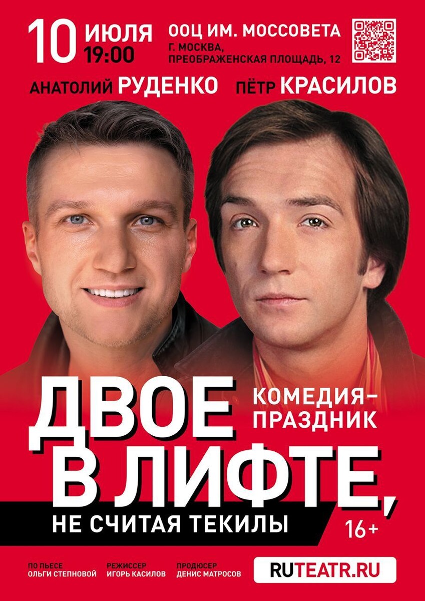 Два мужчины, текила и море юмора в комедии «Двое в лифте, не считая текилы» Стильный, респектабельный, богатый строитель-бизнесмен и... неформал, живущий по своим понятиям. Что может быть общего между этими людьми? И вот они застряли в лифте, и у одного есть бутылка текилы… Играют: Анатолий Руденко, Пётр Красилов 🕐 10 июля 19:00 💵 От 400 ₽ с промокодом ДО500 (промокод дает скидку 50% на любую категорию билетов и распространяется на все спектакли до конца года), купить билет 📍ООЦ им. Моссовета, Преображенская пл., д. 12 #спектакль Подпишись на Москва до 500+