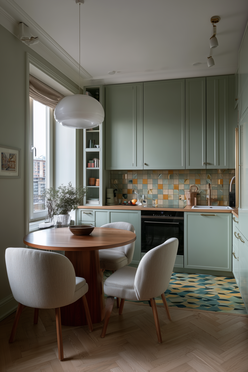 Совсем иного характера требует проект, вдохновленный Средиземноморьем. Азулежу/азулехо (azulejo), ручная плитка на белой глине с яркой геометрической или цветочной росписью, работает как фреска: узор повторяется и на полу, задавая пространственный ритм по принципу continuity — непрерывности поверхности. Этот прием активно применяется в архитектуре Лиссабона и Палермо, где визуальное пространство всегда шире физического. Такая кухня будет выглядеть аутентично даже в мегаполисе.