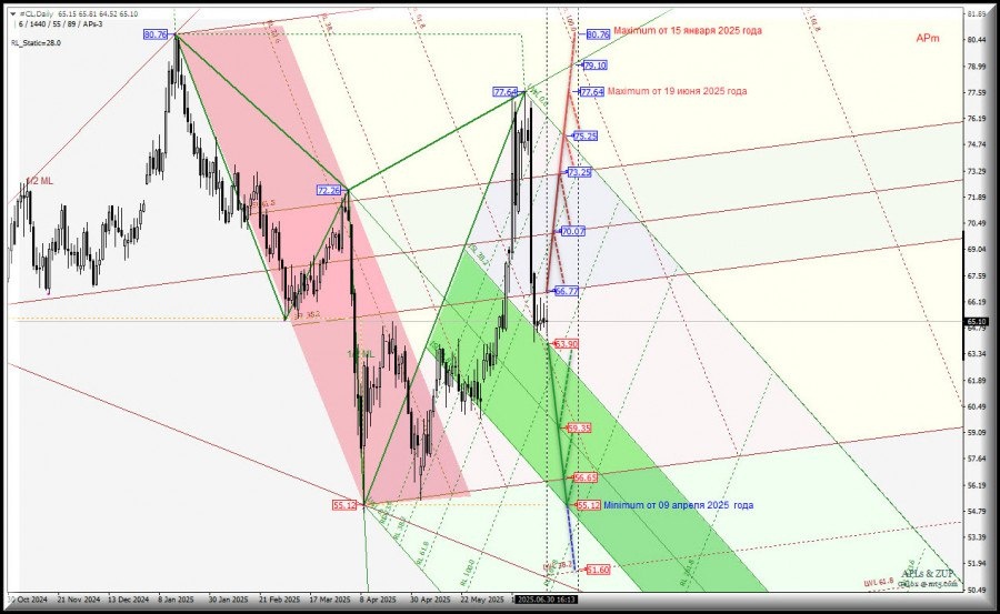 Основные технические уровни для торговли Crude Light Sweet Oil Current Month – Daily – обзор вариантов движения c 01 июля 2025 года.