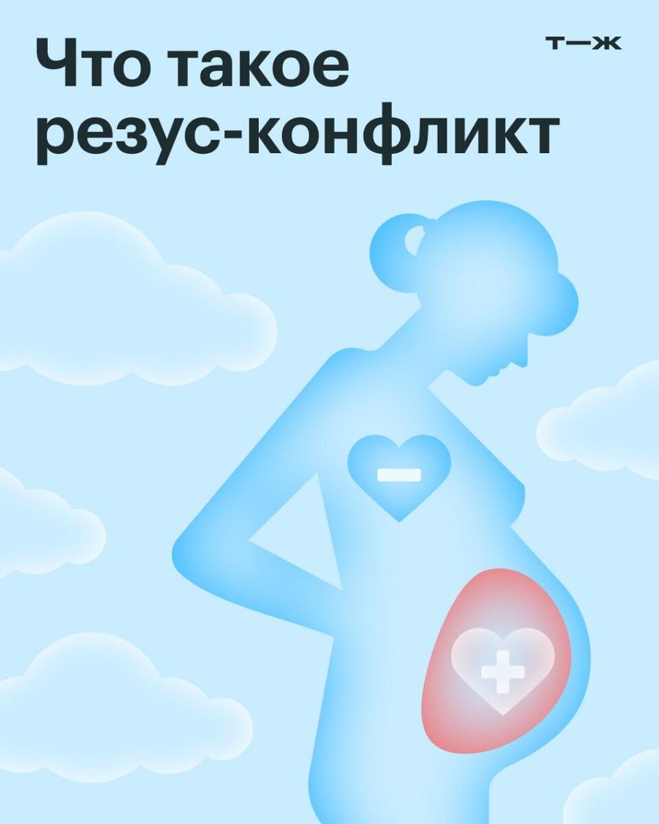 Что такое резус-конфликт и что с ним делать Чтобы понять, как возникает это состояние, сначала придется немного погрузиться в теорию. 🩸 Резус-фактор — это белок, который находится у большинства людей в эритроцитах, то есть красных клетках крови. Таких людей называют резус-положительными. У небольшой части людей такого белка в эритроцитах нет, поэтому их называют резус-отрицательными. Когда говорят, что у человека первая положительная или, к примеру, четвертая отрицательная группа крови, речь идет как раз о резус-факторе. Как возникает резус-конфликт. Такое состояние может развиться, если резус-отрицательная женщина беременна резус-положительным ребенком 🤰 Во время родов, после выкидыша, аборта или из-за травм живота женщины эритроциты плода могут попасть в кровеносное русло матери. Ее иммунная система воспринимает их как чужеродные и вырабатывает антитела к резус-фактору — особые белки, разрушающие клетки с ним. В следующую беременность резус-положительным ребенком антител стан