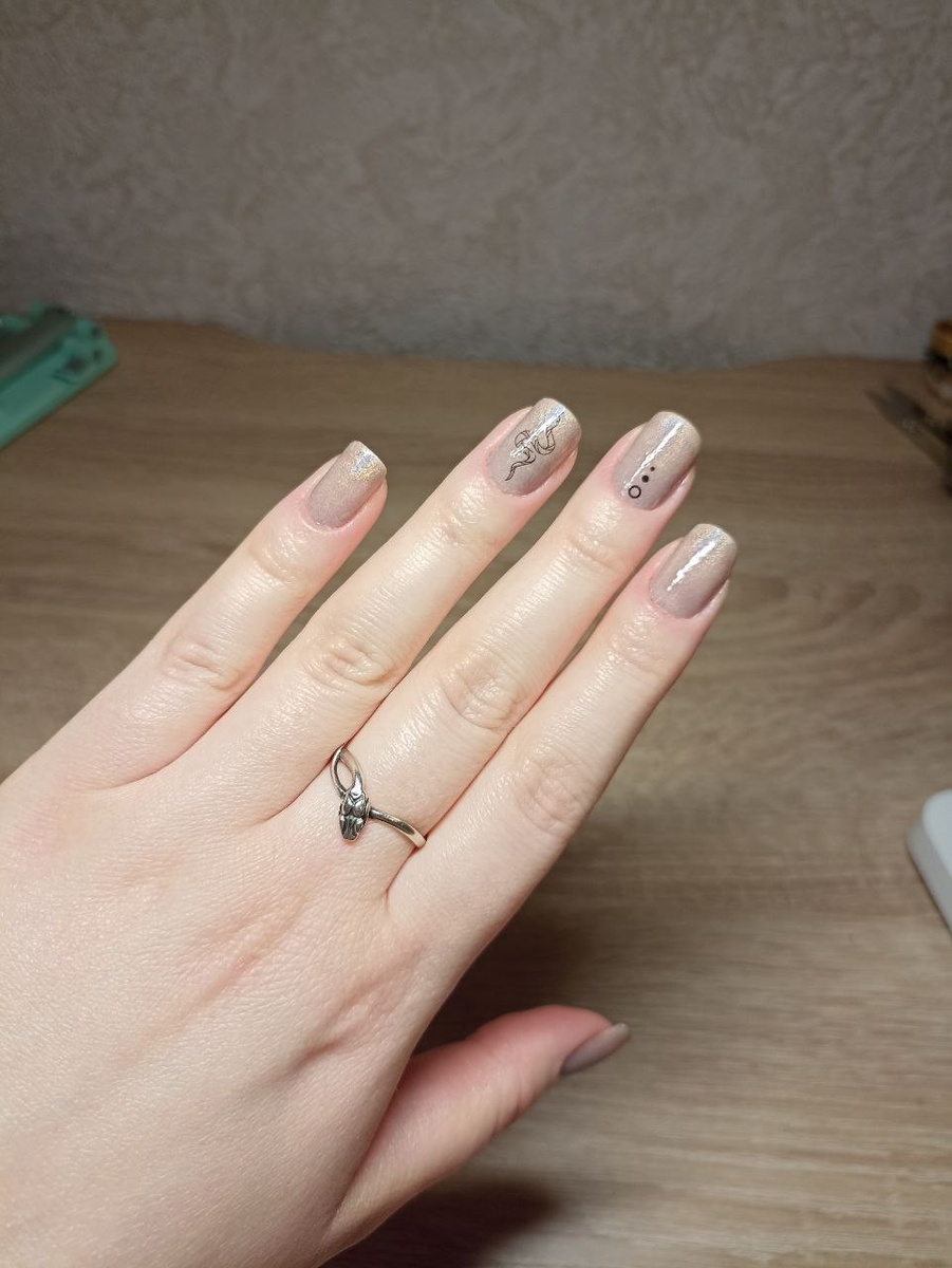 Сделала градиент с помощью лаков Nabyo Стереограмма (голографик) и Step 48. Лак step из коллекции нейл-хайлайтер имеет консистенцию креле надо слоя 3-4 чтобы перекрыл свободный край, так же в нем добавлены мелкие черные крапинки - это бамбуковый уголь, создающие текстуру камня. Ну и шикарный нюдовый голографик от nabyo, красила им прошлой весной и на улице в солнце постоянно залипала на свои ногти 🌟 Очень хорошо подошли по сочетанию эти два лака, а градиент - это один из хороших способов, как пристроить голографик в дизайн).