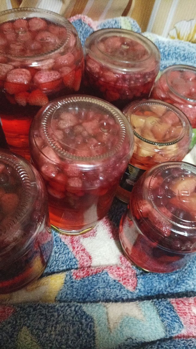 А вот и мои вчерашние компотики. Сделала 9 банок и немного заморозила.