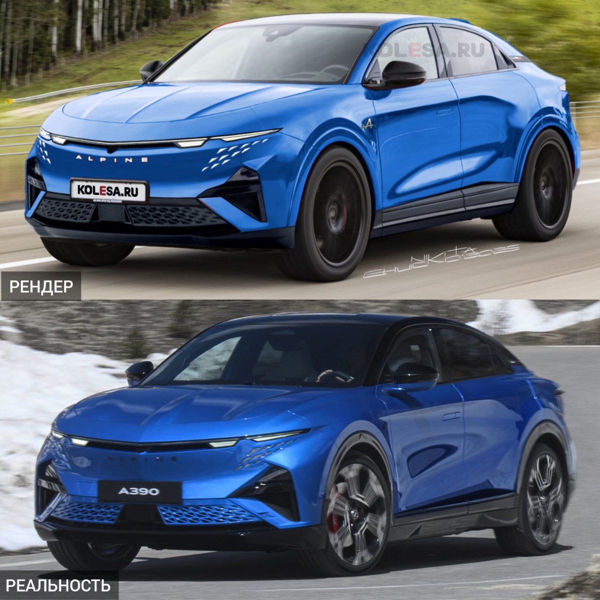 Раз в полгода мы делаем подборку, где сравниваем наши ожидания и реальность. Сегодня начнём с серийного кроссовера Alpine A390, являющийся также первой моделью марки с таким типом кузова. Его премьера состоялась в конце прошлого месяца, а наши рендеры были опубликованы за несколько недель до этого. Имевшиеся на тот момент фотографии замаскированных прототипов позволили достаточно точно воспроизвести внешний вид электрического паркетника, при этом есть и отличия в оформлении фонарей, переднего и заднего бамперов.