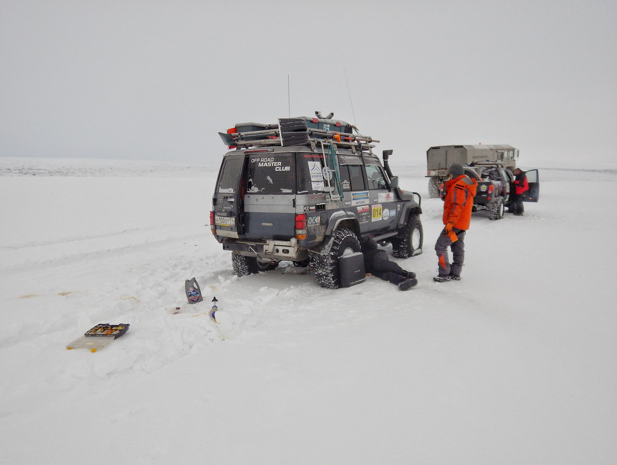 К сожалению, задний мост Тойоты, заваренный в Амдерме, снова пошёл трещинами. Поэтому приходилось постоянно останавливаться и доливать масло. К тому же установленный сзади передний редуктор тоже начал издавать нехорошие звуки. Да ещё и ко всему этому сломало пару шпилек на том же редукторе. Эх, всё-таки не зря мы пошли в сторону дома, а не на Нарьян-Мар.