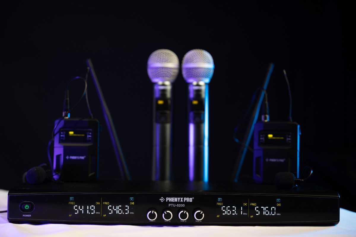 Работаете ведущим? Может быть, проводите конференции, где каждый спикер хочет быть услышан? Или снимаете видео и устали от кучи проводов и вечного «этот шнур откуда»? Тогда обратите внимание на Phenyx Pro PTU-5200 — эту радиосистему можно смело назвать рабочей лошадкой для тех, кто ценит простоту, стабильность и функциональность. Phenyx Pro PTU-5200 — это не просто микрофон, а целый арсенал звука. В комплекте идут четыре независимых радиоканала. Это значит, что можно подключить одновременно до четырёх микрофонов, и все они будут работать без перебоев и без взаимных помех. И да, все эти четыре микрофона — уже в коробке: Коробка внушительная, проводов много, но паниковать не стоит. На самом деле, всё интуитивно понятно: