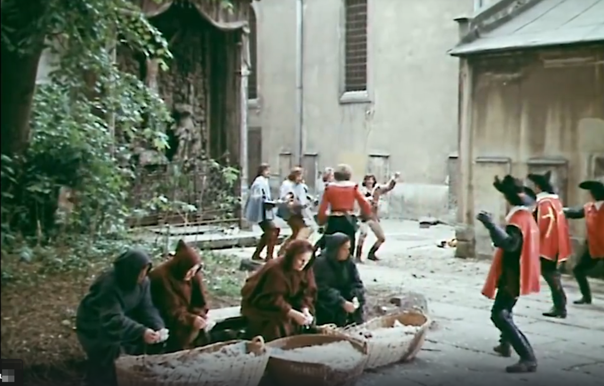 Почему-то моим детям очень полюбился советский фильм "Д’Артаньян и три мушкетёра". Вроде бы ничего не понятно, но отдельные моменты вызывают у них взрыв смеха. Например, когда мушкетёры дерутся с гвардейцами, или когда д’Артаньян нелепо падает или ведёт себя чрезмерно эмоционально. Основную историческую линию и политически-любовную интригу мы кое-как детям объяснили, конечно. Но если честно, когда смотришь этот фильм во взрослом возрасте, видишь кучу нелепостей и нестыковок.