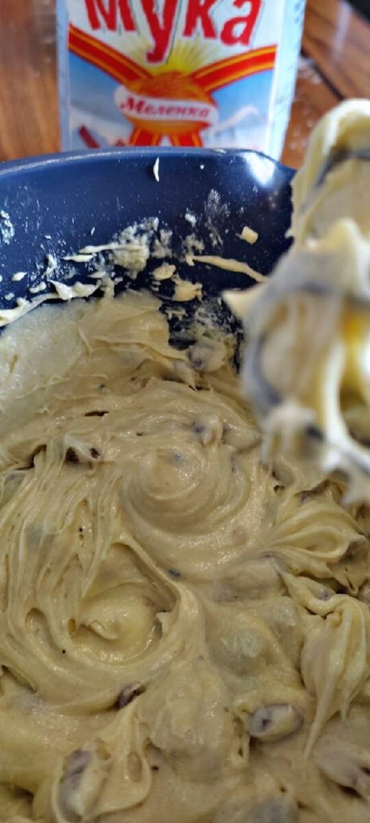 - Добавить промытый и обсушенный изюм. Хорошо перемешать.