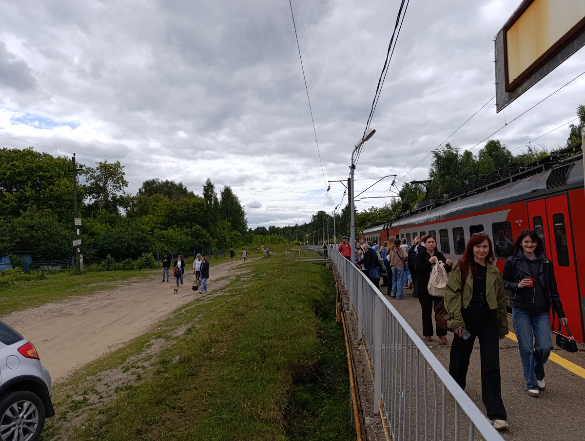 Итак, субботу, 28 июня погода была переменная, то солнце радовало своими лучами, то скрывалось за тучами. Перед этим в пятницу было вообще холодно для лета и влажно, дул пронизывающий ветер. К счастью, в субботу слегка потеплело. На дачу я отправился на электричке в 12:30. Народу высадилось много, несмотря на достаточно позднее время для поездки на дачу.