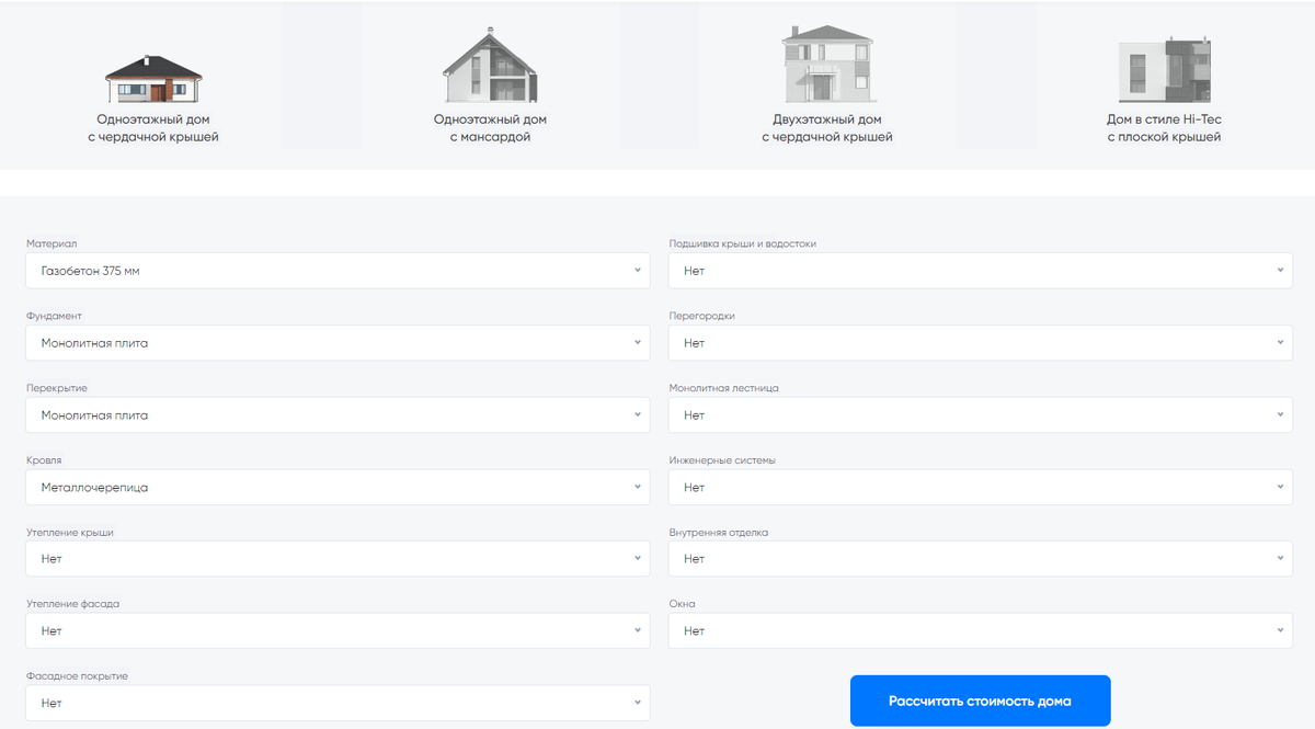 Компания Code Planet всегда рада решать задачи, которые требуют нестандартного подхода и высококачественных решений. Недавно к нам обратилась строительная компания с просьбой создать уникальный калькулятор для расчета стоимости строительства дома. И вот что получилось. Наши заказчики хотели предложить клиентам удобный инструмент, который бы позволял рассчитать стоимость дома в зависимости от множества факторов: типа дома, материала, фундамента, перекрытий и других параметров. Это должно было быть простое, но эффективное решение для клиентов, которые не хотят тратить время на сложные расчеты, но хотят получить точную цену. Как сделать калькулятор удобным и понятным? Мы начали с того, что создали удобный интерфейс для калькулятора, который включал следующие параметры: Особое внимание уделили возможности расчета для различных стилей домов, включая нестандартный стиль Ні-Тес с плоской крышей. Мы включили возможность ввода всех данных с простыми подсказками, чтобы пользователь точно знал, к