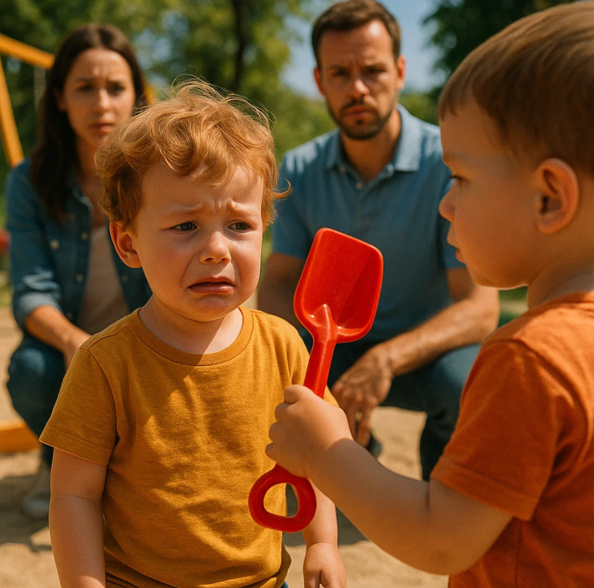 Лето, площадка, солнце… и вдруг — слёзы. У вашего малыша забрали игрушку прямо из рук. Например, лопатку. Что делать в этой ситуации, чтобы не усугубить конфликт и помочь ребёнку чувствовать себя в безопасности? Когда ребёнок сталкивается с несправедливостью, он испытывает сильные эмоции: обиду, растерянность, злость. В этот момент ему важнее всего опора взрослого. Не спешите сразу вмешиваться или разбирать ситуацию — сначала обнимите, положите руку на плечо и проговорите: «Ты расстроился, потому что у тебя забрали лопатку. Я с тобой.» Так ребёнок почувствует себя в безопасности и сможет легче справиться с эмоциями. Малыши в этом возрасте ещё не понимают, что у вещей есть хозяева, и всё вокруг для них — объект исследования. С разговорами здесь не выйдет. Лучшее решение — подойти к родителю ребёнка, который забрал игрушку, и спокойно попросить вернуть. ❗️Важно: не вырывайте игрушку из рук чужого малыша сами — это может усилить конфликт. Дети после 2 лет уже начинают понимать понятие
