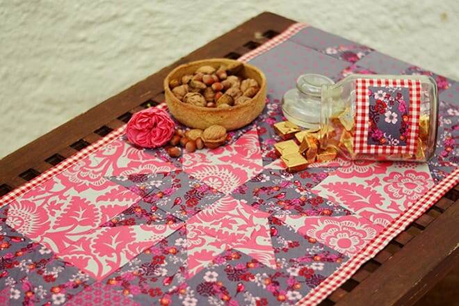 Салфетки на стол придают уют жилому пространству, украшают наш быт. Их можно использовать для красоты и создания тёплой атмосферы в доме. Такие салфетки могут выполнять чисто декоративную функцию, а также активно использоваться в повседневной жизни. Их легко стирать и можно использовать по своему настроению на различных поверхностях. Это может быть обеденный стол, журнальный стол, стол под цветы, комод, стеллаж, полка. Конечно же, такие вещи сейчас в огромном ассортименте продаются в магазинах и на маркетплейсах. Но для рукодельниц не проблема сделать дорожку на стол или салфетку. Это и возможность проявить свой индивидуальный подход, а иногда и переработать остатки ткани и лоскуты. В этой статье я поделюсь некоторыми идеями таких изделий для дома и интерьера. Возможно кому-то будет интересно и он использует идеи для создания новых творческих проектов. Салфетка на фото ниже выполнена в стиле печворк из разноцветных лоскутов в виде треугольников и квадратов. Можно использовать ткани с