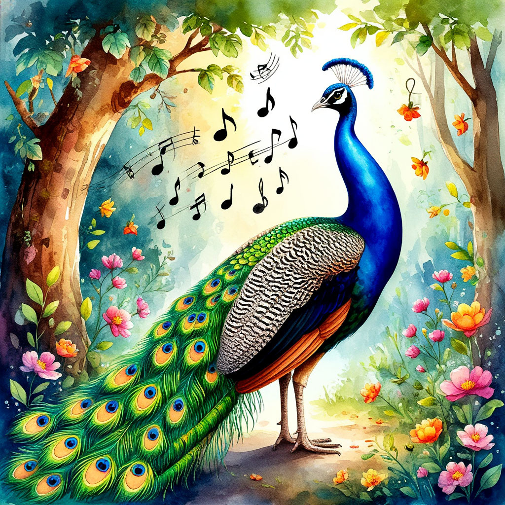 В одном волшебном лесу жил молодой павлин по имени Радужный Хвост. У него был самый красивый хвост на свете — переливающийся всеми цветами радуги, но он очень хотел петь... — Как же несправедливо! — вздыхал он, глядя на соловьёв. — У них такие чудесные голоса, а я могу только распускать перья! Однажды он отправился к старой Фее, что жила у кристального водопада. — Дай мне голос слаще мёда! — взмолился павлин.