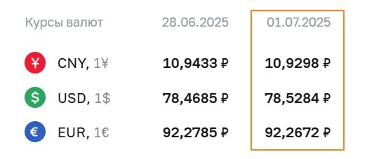 🇷🇺#RUB #fx ЦБ установил официальные курсы валют на 1 июля