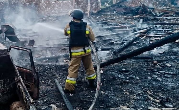В результате удара по зданию территориального центра комплектования выбило окна, частично обрушилась крыша, начался пожар.