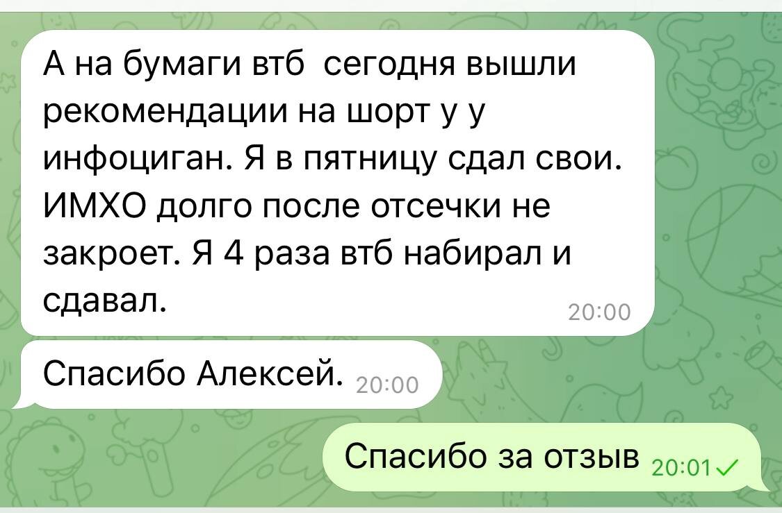 Говорят инфоцыгане шортят втб… там есть какой то крупный игрок который продает на самом деле