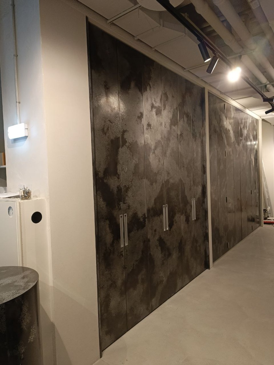 Раздвижная перегородка. Каждая сторона из четырёх дверей.