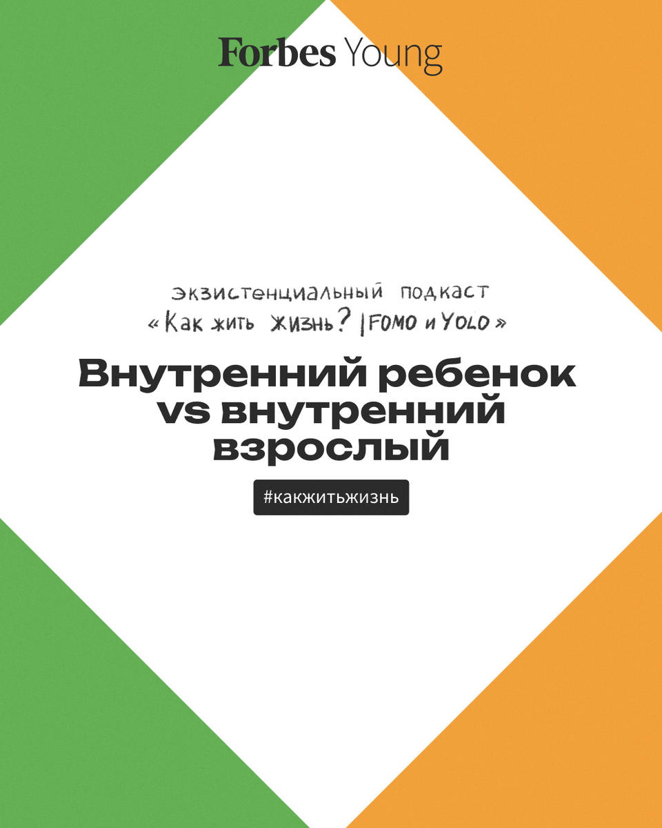 Зачем нам внутренний взрослый? Чем он отличается от внутреннего ребенка — и почему они оба важны? Отчего мы так боимся взрослеть и нести ответственность? И как научиться быть опорой себе, не потеряв любопытство и радость жизни? В 18-м выпуске второго сезона экзистенциального подкаста «Как жить жизнь? | FOMO и YOLO» мы обсуждаем, что значит быть взрослым и зачем нам поддерживать баланс между «я взрослый» и «я ребенок». А выпуск слушайте прямо сейчас: • на сайте Forbes • в плеере Telegram • в Apple Podcasts • на «Яндекс Музыке» • в Castbox • в Spotify • или на другой удобной платформе Внутренний ребенок: • хочет поддержки и одобрения • ищет безопасность и защиту • стремится к удовольствиям здесь и сейчас Внутренний взрослый: • умеет быть опорой себе • принимает сложные решения и несет за них ответственность • может отложить удовольствие ради цели Внутренний ребенок: • часто боится сделать ошибку • чувствует стыд и вину, если не соответствует ожиданиям • ориентирует