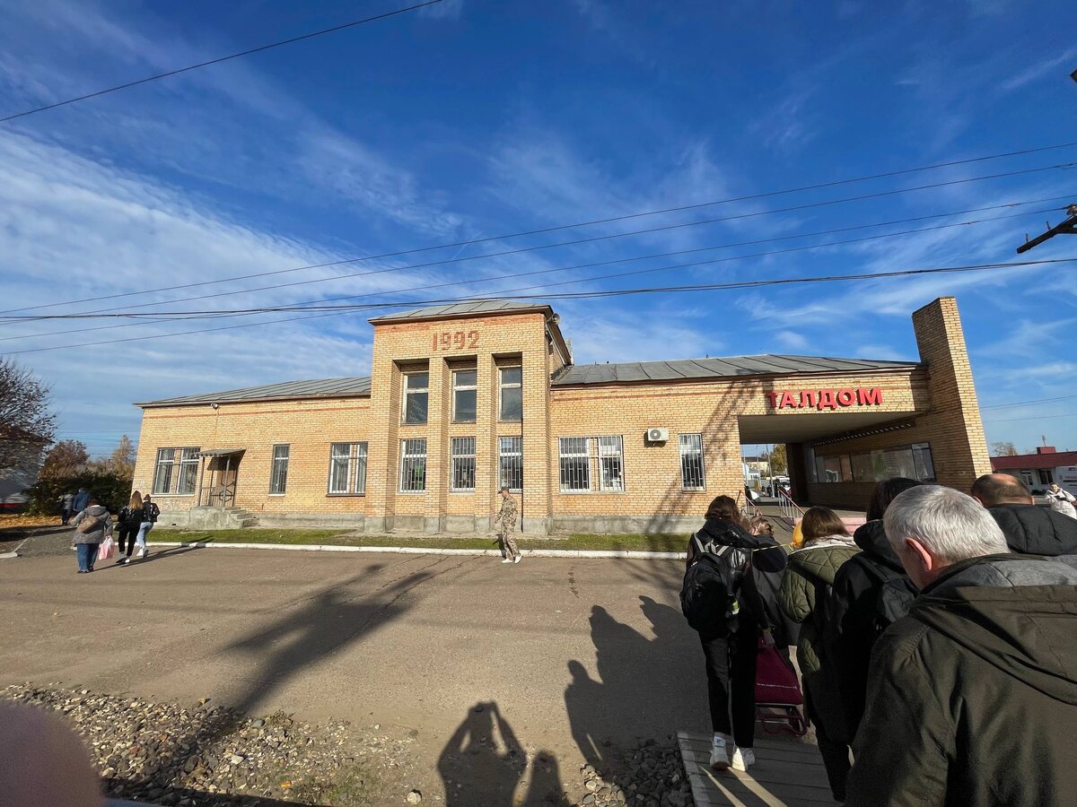 Друзья, у нас сегодня для вас — настоящее золото! Железнодорожный вокзал Талдома не поразит вас внешним видом. Если верить выложенным цифрам на фронтоне, вокзал открыл свои двери для пассажиров в 1992 году. Да, это уже эпоха новой России, но это лаконичное и функциональное здание скорее можно отнести к позднесоветской школе архитектуры модернизма. Но чем вокзал вас точно поразит — так это интерьерами! Внутри — настоящая золочёная шкатулка, будто вдохновлённая мастерами древней чеканки. Пол из очень крупного терраццо кажется лишь отражением золотой, строгой геометрии потолка в тревожном водяном зеркале, а стены отделаны светлым мрамором, который подчёркивает контраст верхней и нижней частей интерьера. Пышные и замысловатые люстры добавляют гармонии в этот дерзкий пир постмодернизма. Это просто отвал всего — да простят нас за такую вольную формулировку. Здание и правда достойно того, чтобы стать местным памятником архитектуры своей эпохи. Так что, будете в Талдоме — обязательно заг