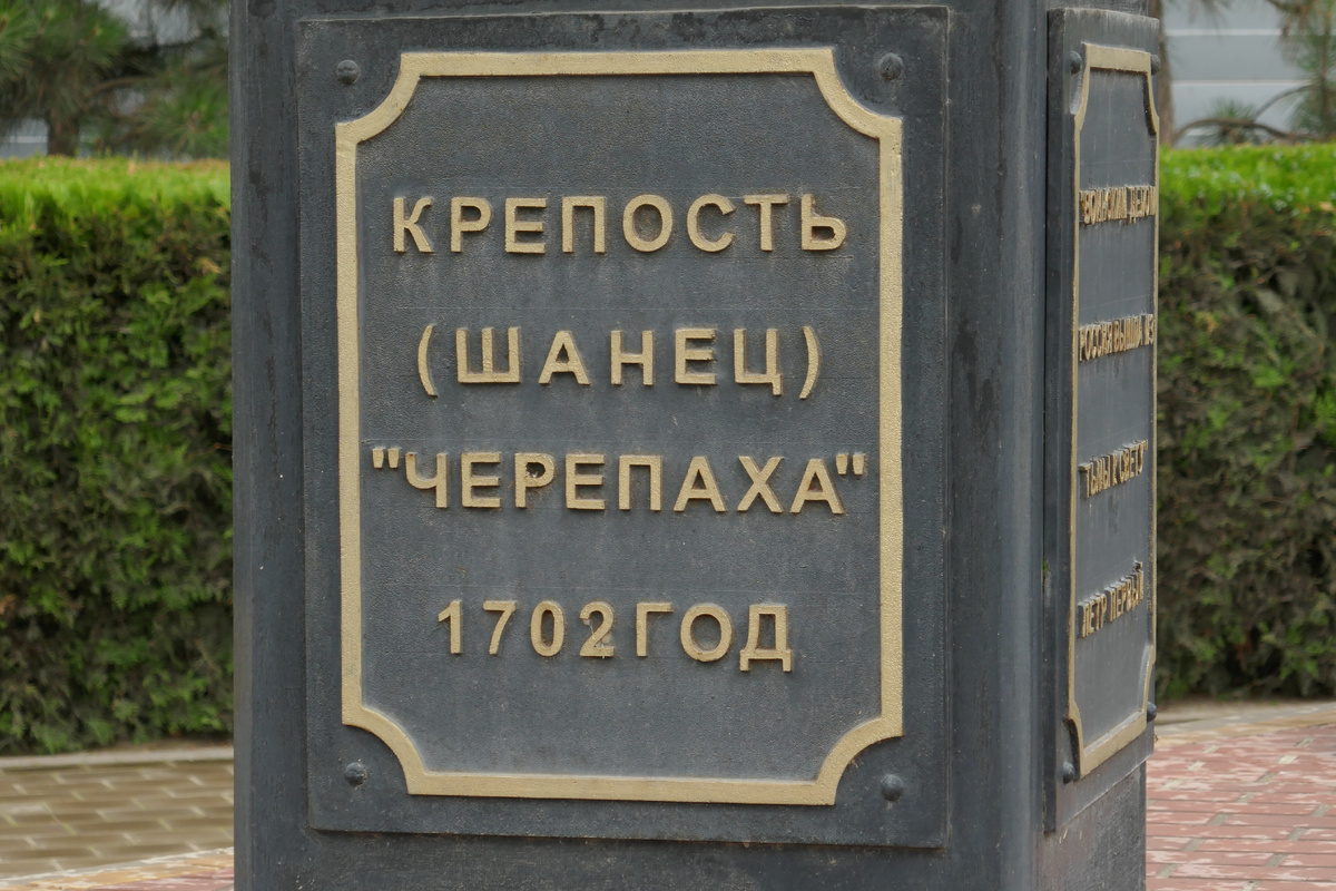 В 17 -18 веках на берегах Миусского лимана были построены оборонительные крепости, которые считались фортификационным постом Троицка (нынешний г. Таганрог Ростовской области). Он включал в себя три крепости: 1. Крепость Черепаха (Шанец) 1702 года. Свое название она получила от ракушек, которых было в изобилии в Азовском море, но тогда их почему-то именовали черепахами, хотя черепах в этом море не было. Земляная крепость имела треугольную форму и была началом Троицкой оборонительной линией. Это был Петровский вал длиной 9690 метра и шириной 10 земляных редутов (высота 2.5 м и шириной 4.7м). Сейчас на месте этой крепости металлургический завод г. Таганрога, но рядом с его забором установлен памятный знак о ее существовании. PS. на 3-ем фото на верху постамента находится латунный желный знак ввиде некой пики. Честно, не знаю, что сие означает и данных не нашла. 2. Павловская крепость - земляной вал четырехугольной формы 237 метров на 80 метров была размещена на территории нынешнего х. Га