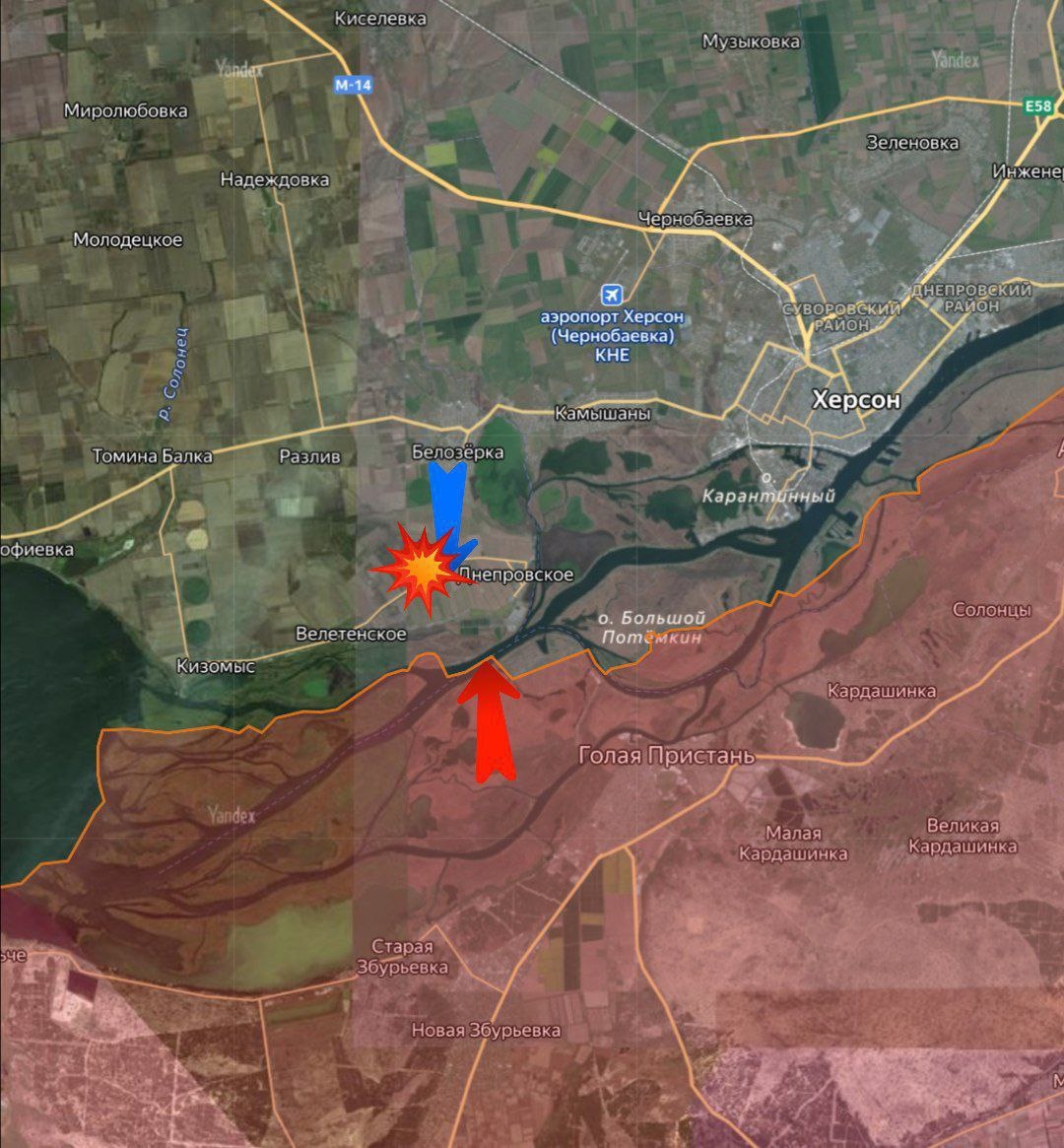 ВС РФ обнаружили укрепрайон противника, технику в р- оне н.п Днепровское, Садовое во время разведывательных мероприятий.