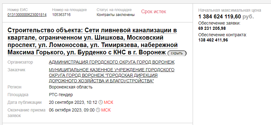 Под угрозой срыва находится реализация крупнейшего в Воронеже инфраструктурного проекта – строительство сетей ливневой канализации (магистральных трубопроводов) в ряде улиц Коминтерновского и Центрального районах города. Стоимость этих работ составляет 1 млрд 384 млн рублей, деньги – бюджетные кредиты из федеральной казны. Они используются мэрией Воронежа, мягко говоря, не эффективно. Не исключено, что сотни миллионов рублей из федерального бюджета могут быть «потеряны», а окончание реализации проекта строительства сетей ливневой канализации вновь будет отложено на год или на два.