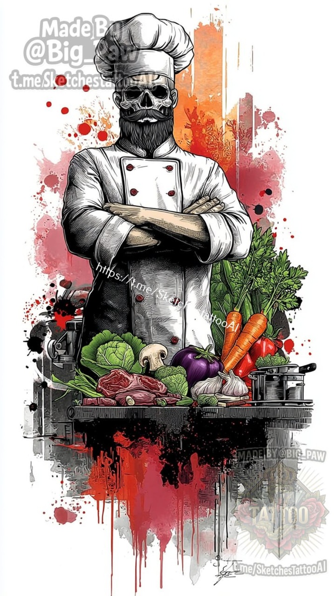#2564 Подборка по запросу подписчика - Нужен повар с ножами на заднем фоне разная овощная атрибутика связанная с кухней в стиле Трэш полька кровь мясо и всё такое 😎 Докинул ещё другие что были давно сделаны 🧠 SYNTX 💳 Донат 😎 НейроБро 😎 Эскизы без вотера 💀 Эскизы от нейросети #повар #кухня #трэшполька